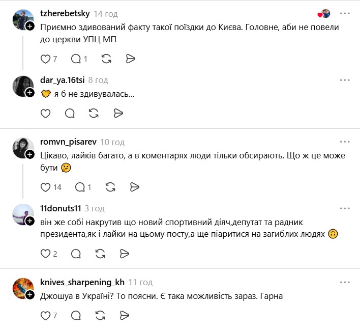 Дуже хочеться сподіватися, що під час поїздки Джошуа в Україну йому пояснять: викладати публікації з бійцями з оточення Кадирова, які внесені до державних баз спортивних діячів, що підтримують війну, — це ненормально.