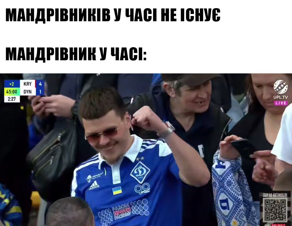 Того самого фаната "Динамо" назвали мандрівником у часі. У мережі жартують, що він знав підсумковий рахунок, а тому тішився, коли Біло-сині летіли у 3 м’ячі