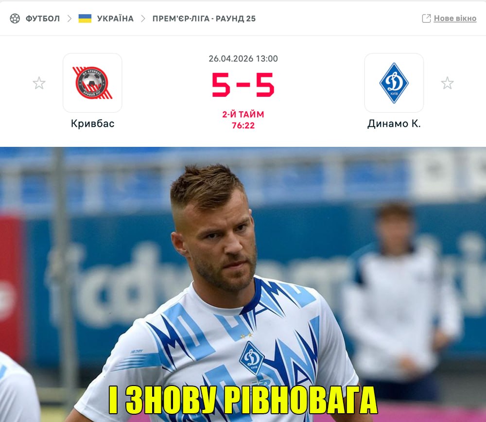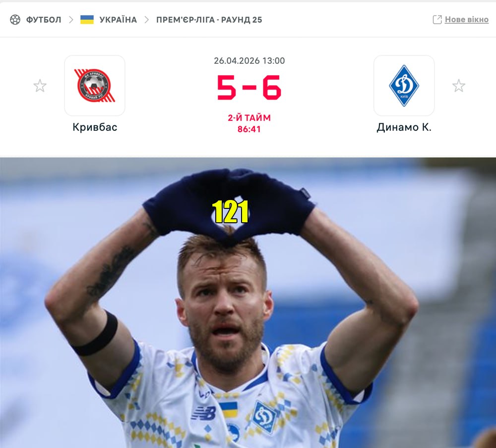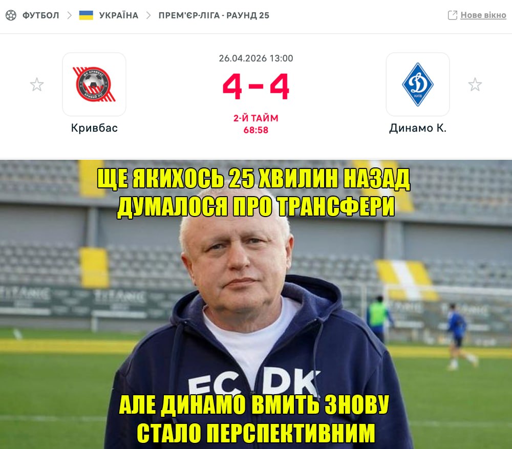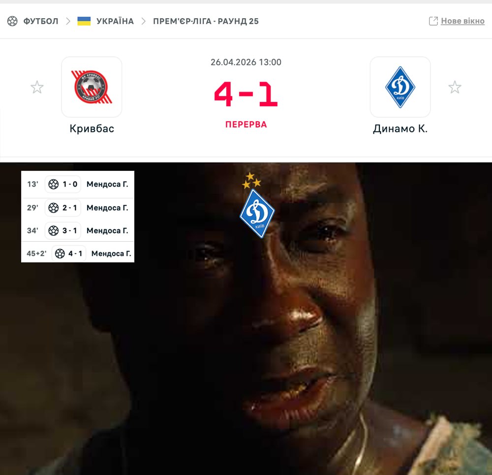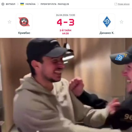 "Кривбас" — "Динамо" Новина оновлена 26 квітня 2026, 17:40