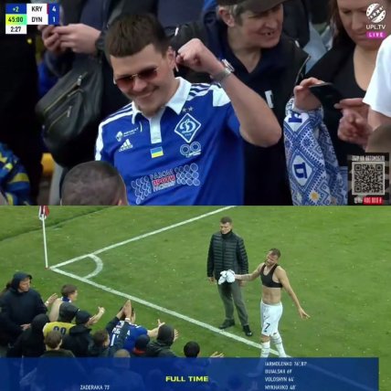 У пряму трансляцію потрапив фанат у футболці "Динамо". Він радів, коли його команда програвала у 3 м’ячі