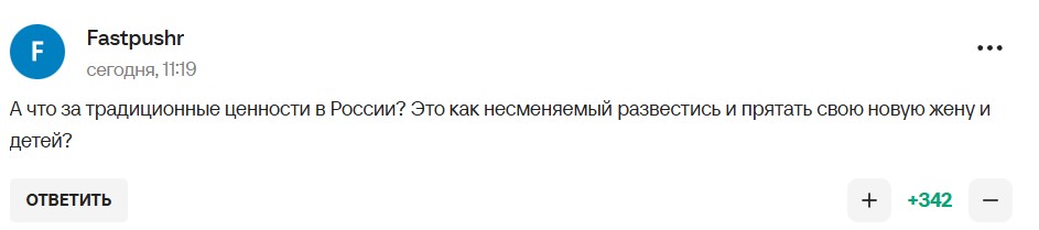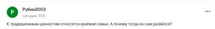 Примітно, що сам Путін не вписується у свою концепцію "традиційних цінностей". На це звернули увагу у мережі. Річ у тому, що в указі глави Кремля чітко йдеться, що до традиційних цінностей належить "міцна сім’я", при цьому президент РФ офіційно розлучений, а неофіційно приховує своїх дітей від коханки.