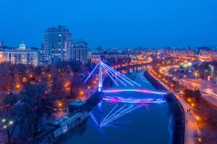 Його кілька років тому реконструювали, а після встановлення підсвітки місце стало ще більш романтичним. Тож ймовірно, він зможе конкурувати з Лопанським пішохідним мостом за право називатися головним мостом закоханих Харкова.