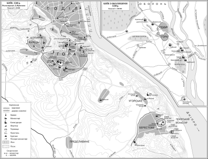 Київ у 1240 році. Предславине показано у ніжній частині. Реконструкція Д. Вортмана.