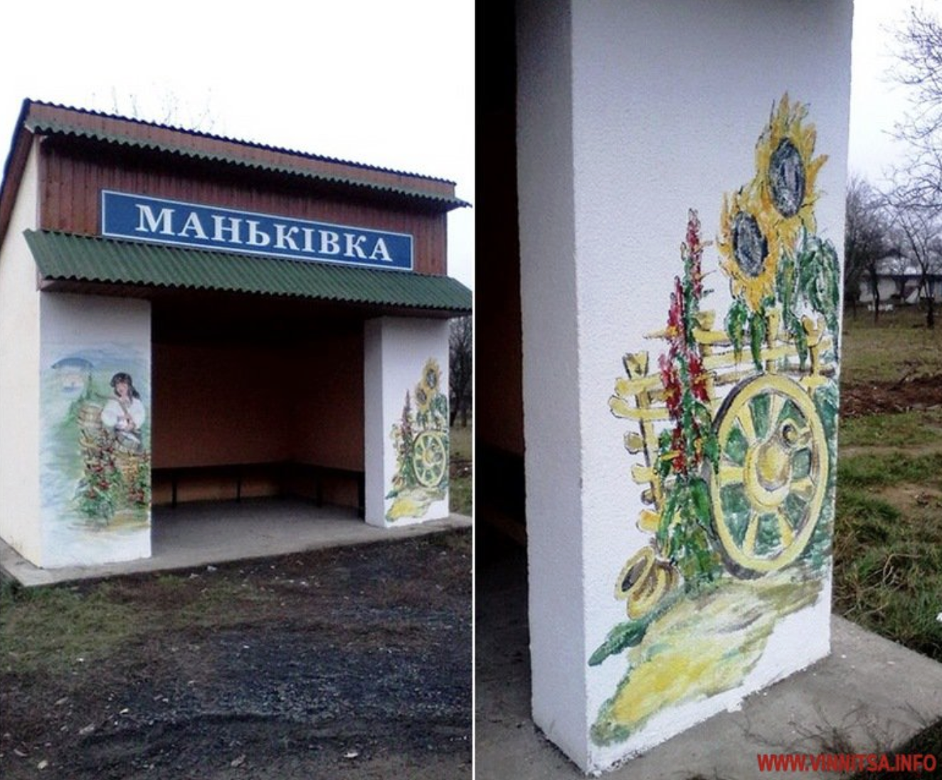 "Якщо Бог дав мені такий дар, то потрібно його використовувати і робити красу. Малювала все безкоштовно, близько тижня. Людям подобається і мені приємно. Підприємець, який орендує у нас землі, поставив зупинку у Манівці, збудувавши всередині декоративну піч. Я її задіяла у композиції. Вийшла хатинка: з піччю, лавкою і різноманітними стравами (намальованими)", — розповідає майстриня журналісту Вiнниця.info.