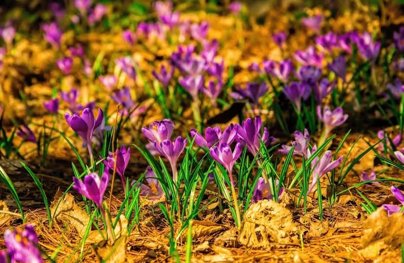 В Україні розпочинається сезон цвітіння крокусів. Хоча садові крокуси можуть бути білого, жовтого та інших відтінків, дикі квіти у природі створюють фіолетові острівці.