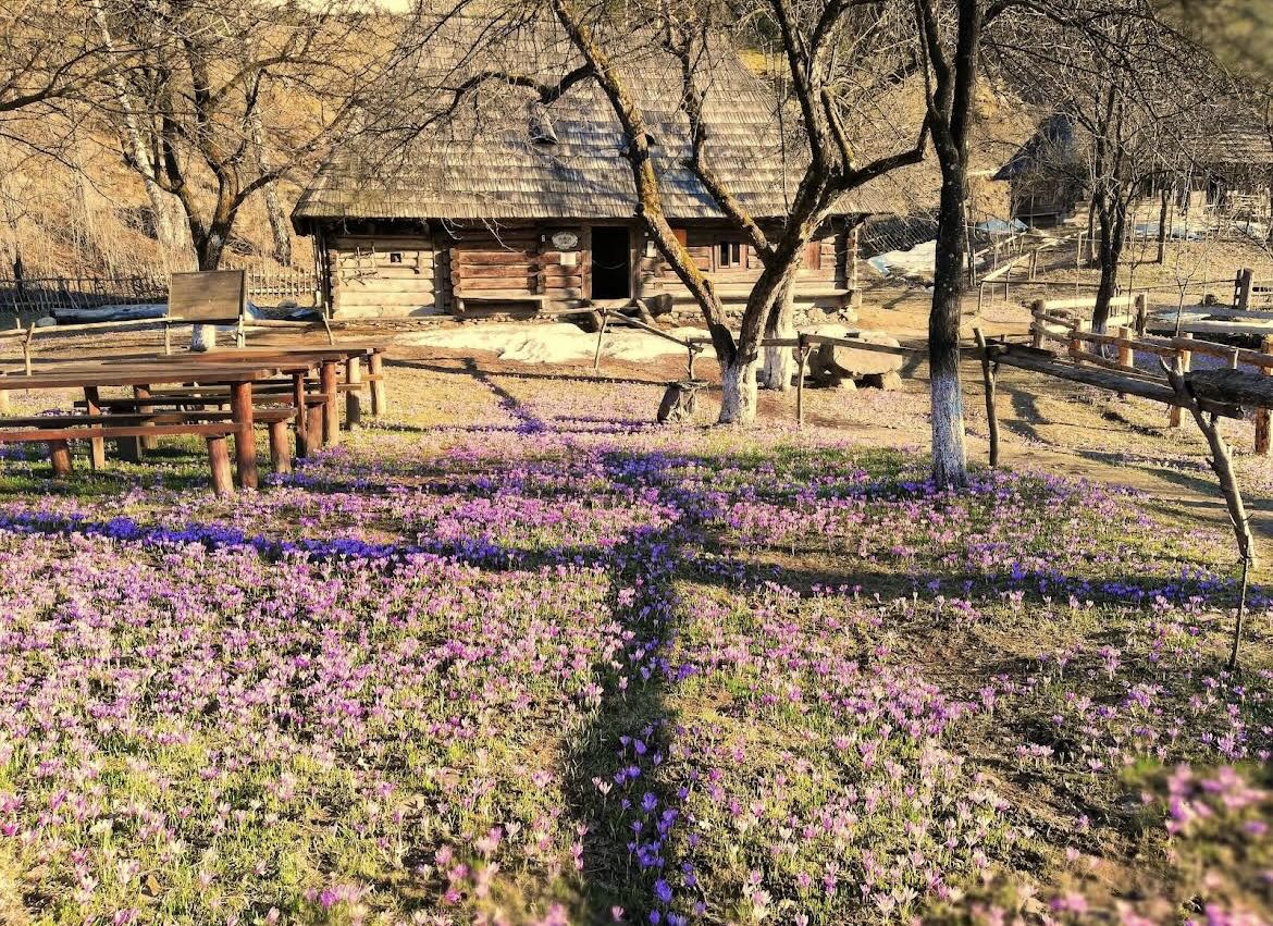 Ще одна локація для милування крокусами та неймовірних фото – Музей архітектури та побуту "Старе Село" у селі Колочава Закарпатської області.