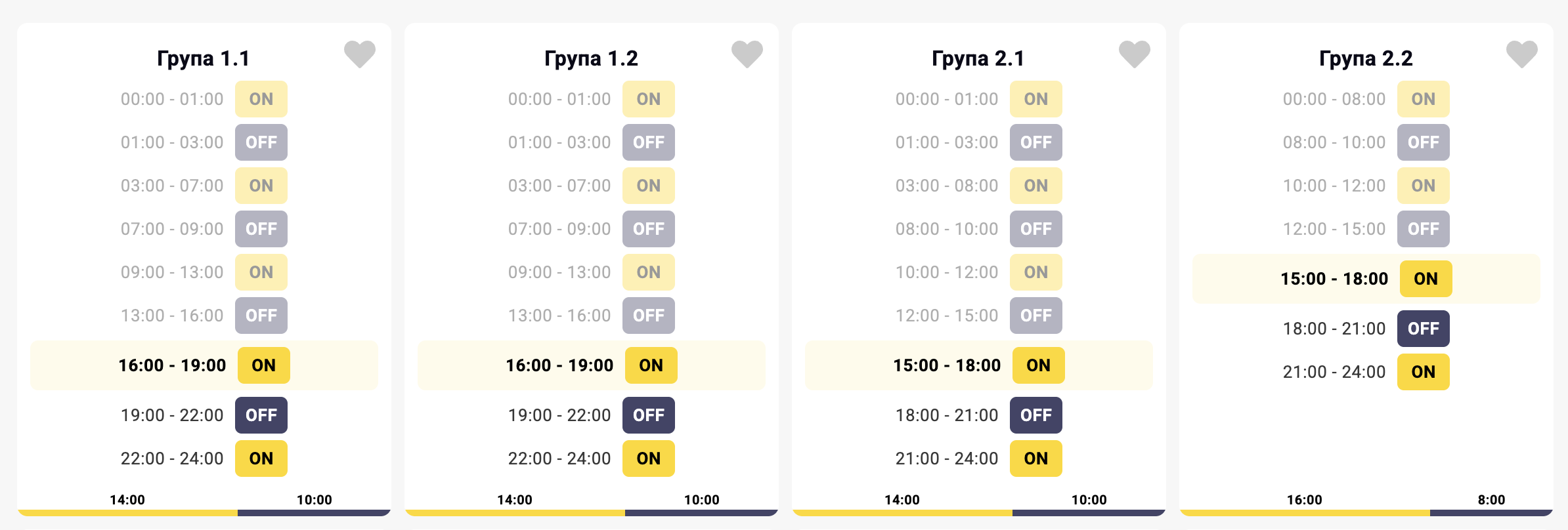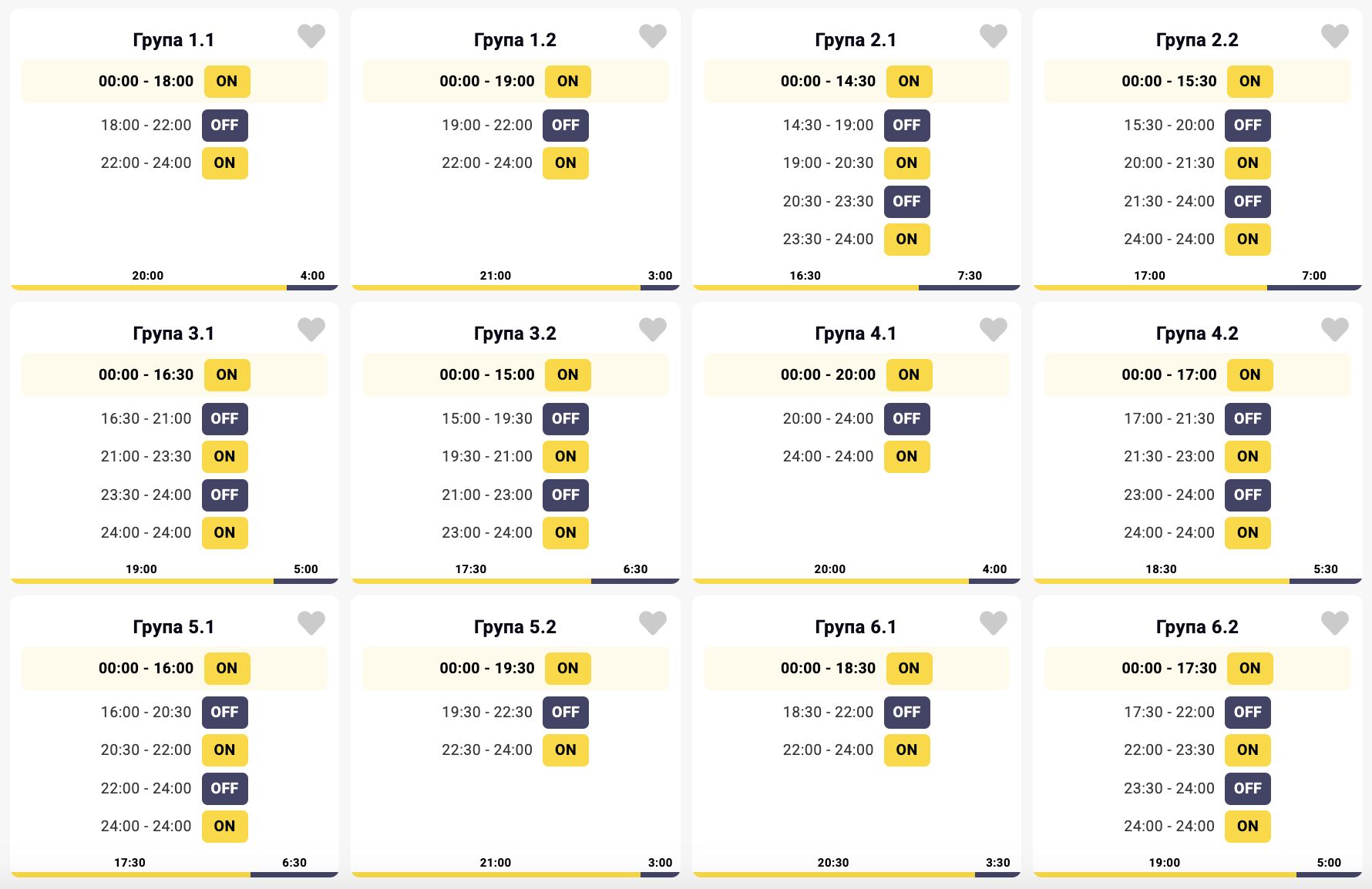 Протягом доби застосовуються відключення для кількох черг одночасно