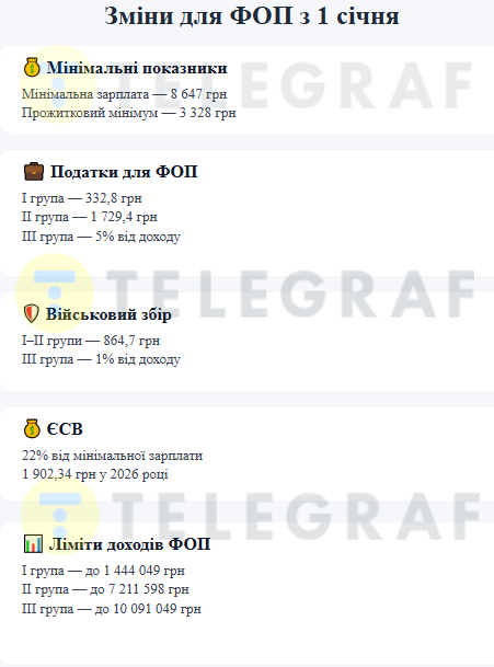 Мінімальний єдиний соціальний внесок (ЄСВ) становить 22% від мінімальної зарплати, у 2026 році всі групи ФОП платитимуть 1902,34 грн. ЄСВ замість 1760 грн.