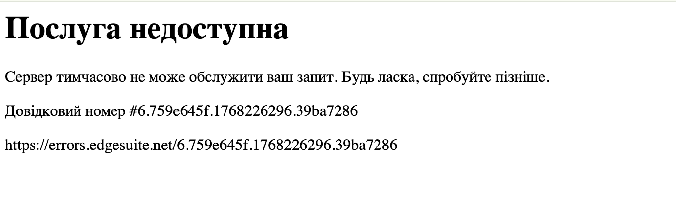 Наразі вживаються заходи щодо відновлення та стабілізації електропостачання. Однак коли точно буде відновлено роботу ще невідомо. Зауважимо, що під час спроби зайти на портали цих сервісів, видає помилку, як видно на фото нижче.