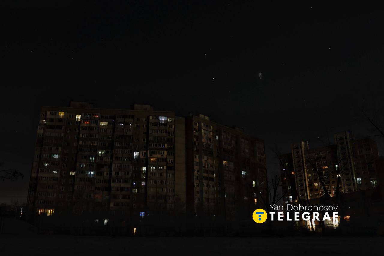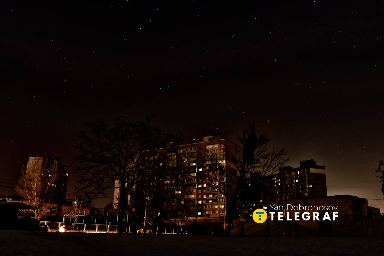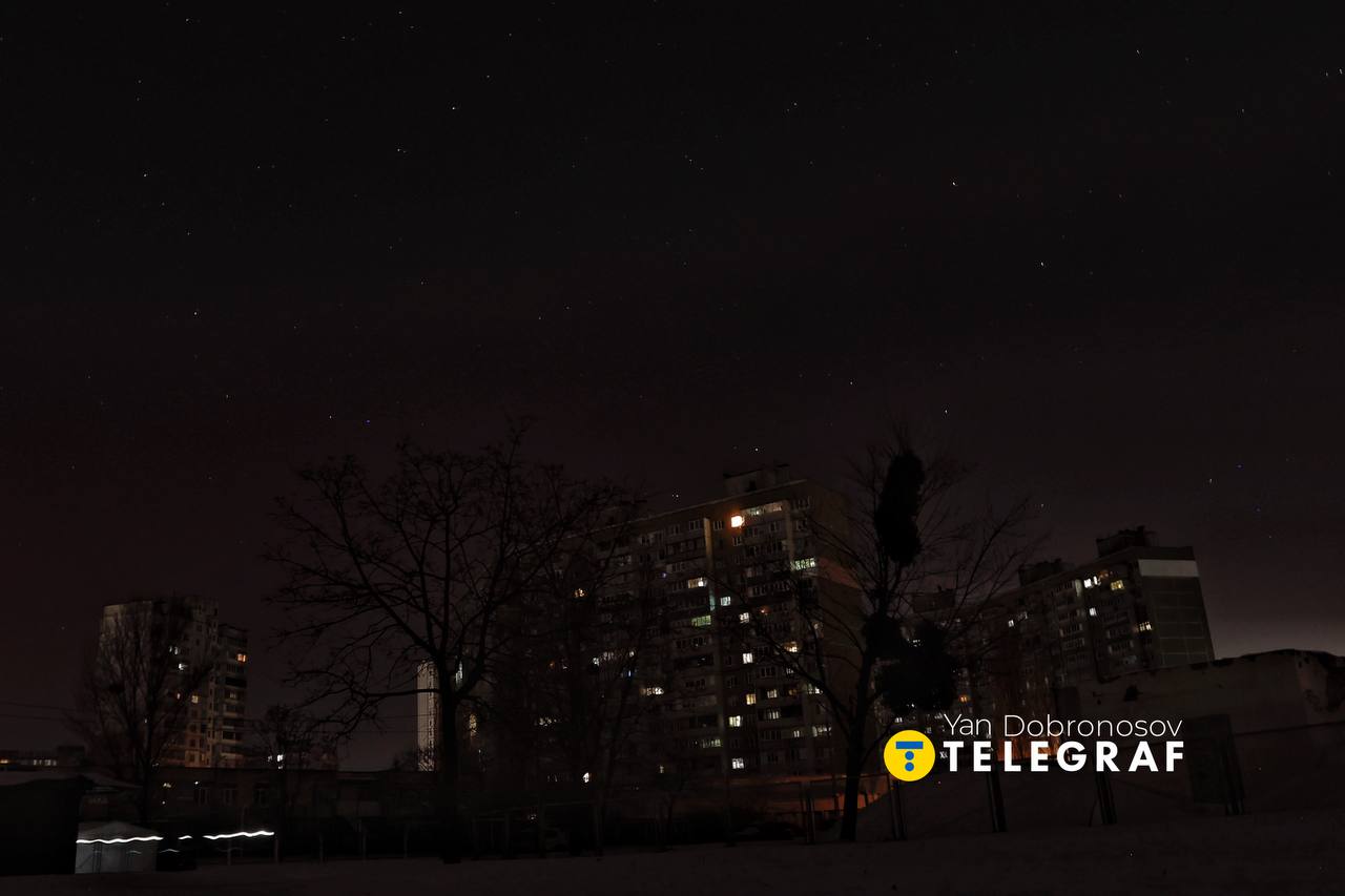 Тим часом багатоповерхівки стоять з темними вікнами, у яких зрідка можна побачити світло. Самі ж кияни залишаються без електропостачання десятки годин, а після сьогоднішнього обстрілу ситуація стала ще більш складною.