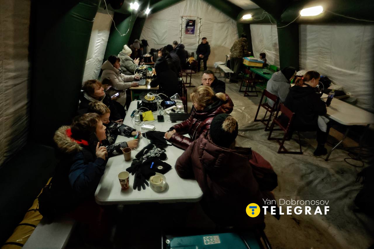 У Пунктах незламності можна побачити українців, які заряджають телефони, павербанки, зарядні станції та зігріваються. Чимало таких пунктів встановлено посеред житлових будинків.