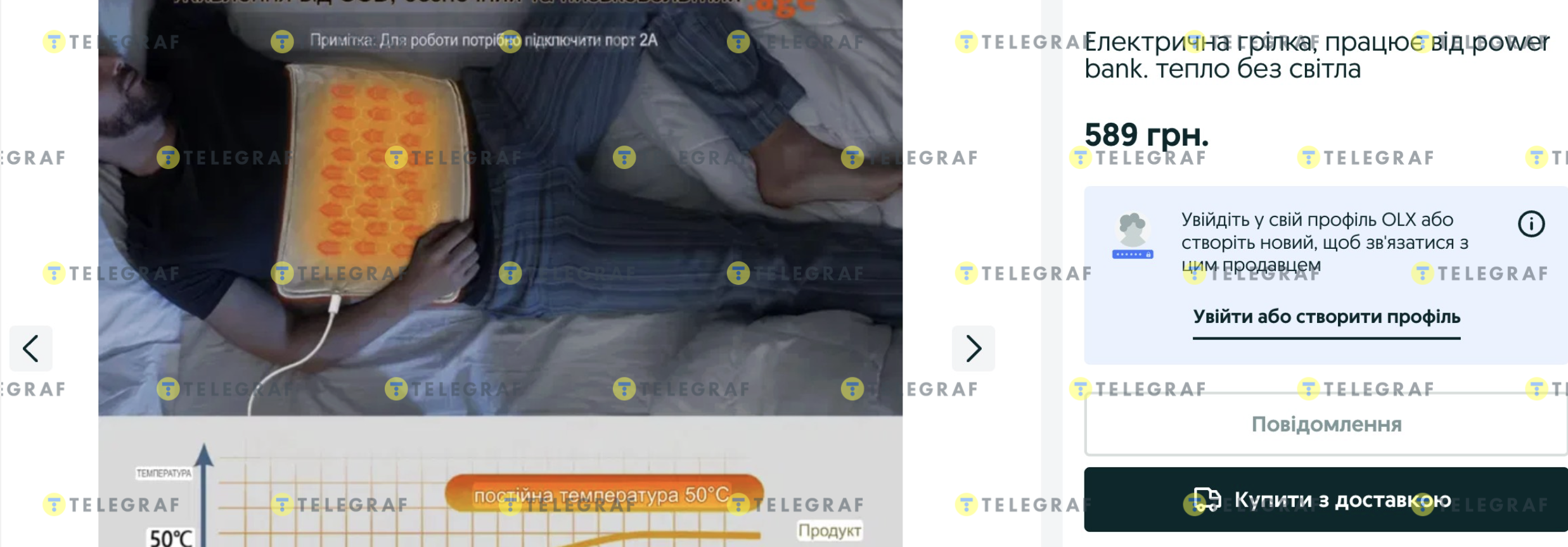 Електрична грілка. Коштує девайс майже 600 грн. Працює від USB та павербанка. Розмір: 50х30 см. Має автоматичне вимикання після двох годин роботи.