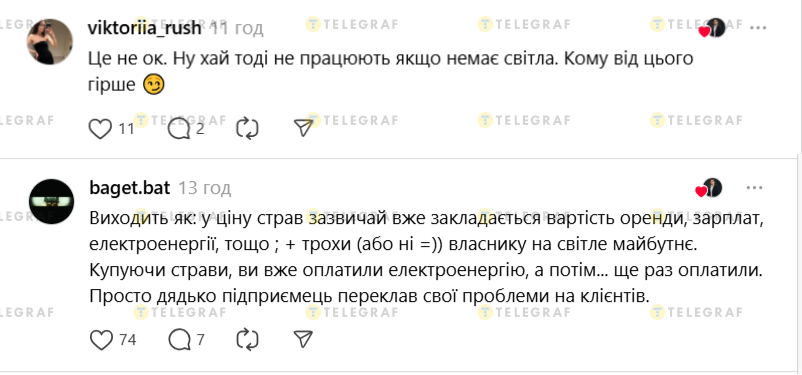 - Це не ок. Ну хай тоді не працюють якщо немає світла. Кому від цього гірше