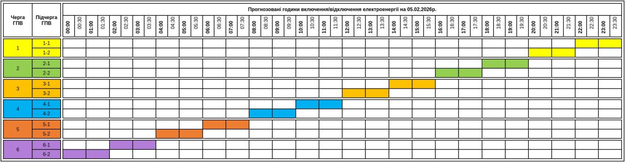 До 17 годин без світла. Графіки відключень на 5 лютого
