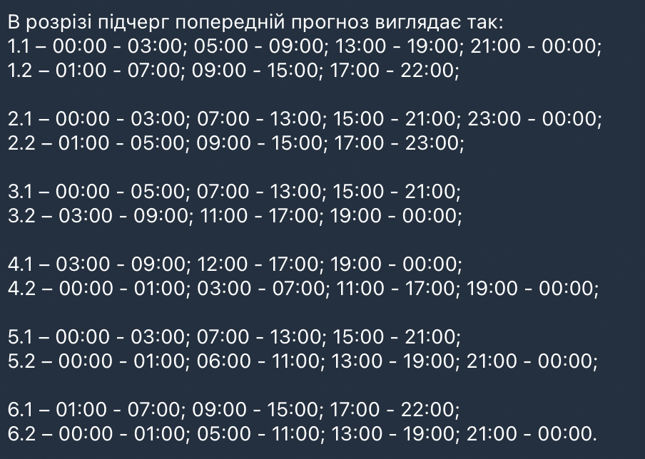 - Графіки будуть нерівномірні в різних районах через особливість пошкоджень енергосистеми.
