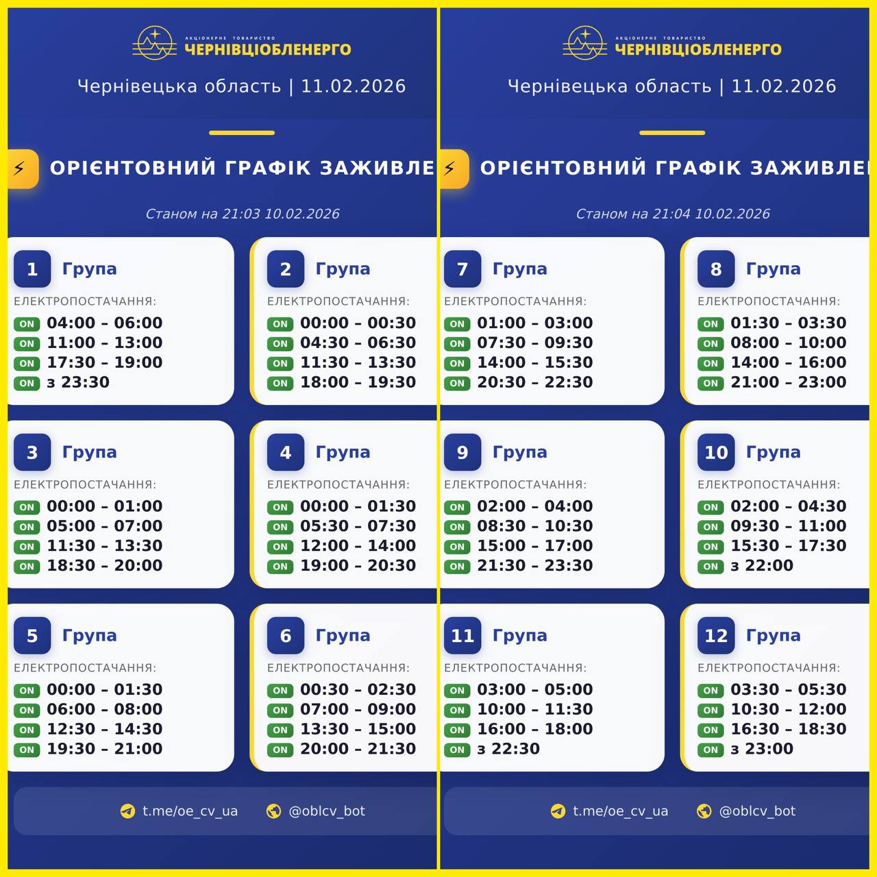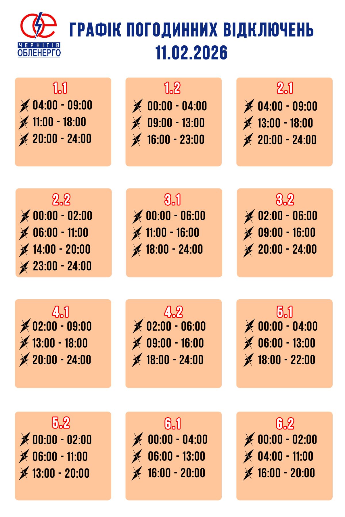 Графіки відключень у Чернівецькій області 11 лютого