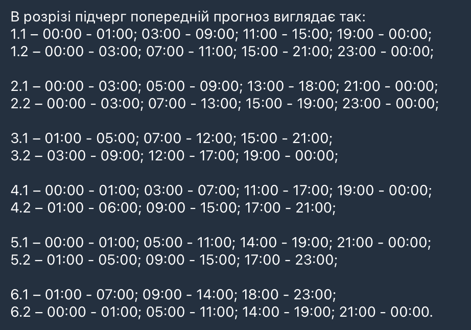 • Графіки будуть нерівномірними у різних районах через особливості пошкоджень енергосистеми.