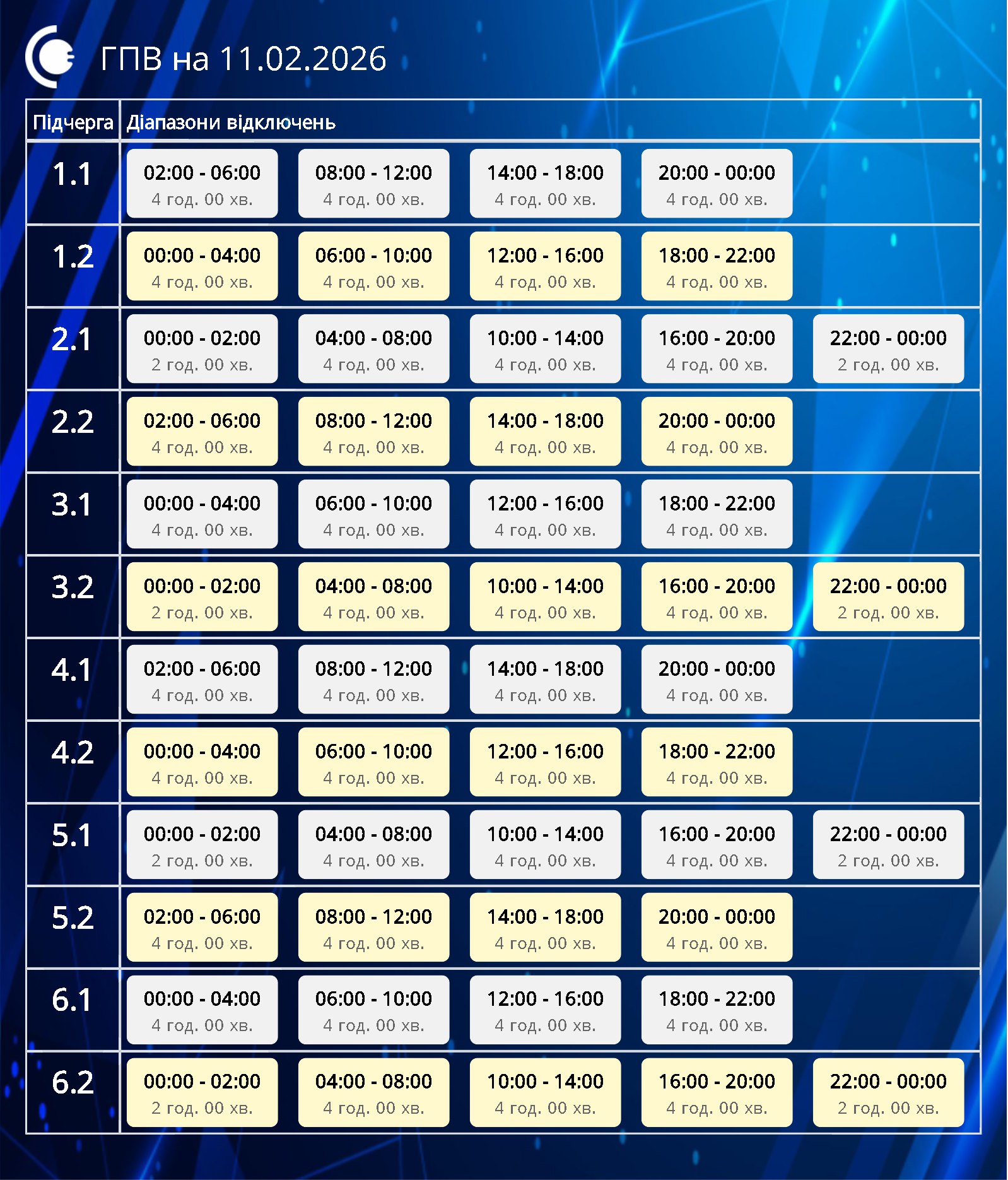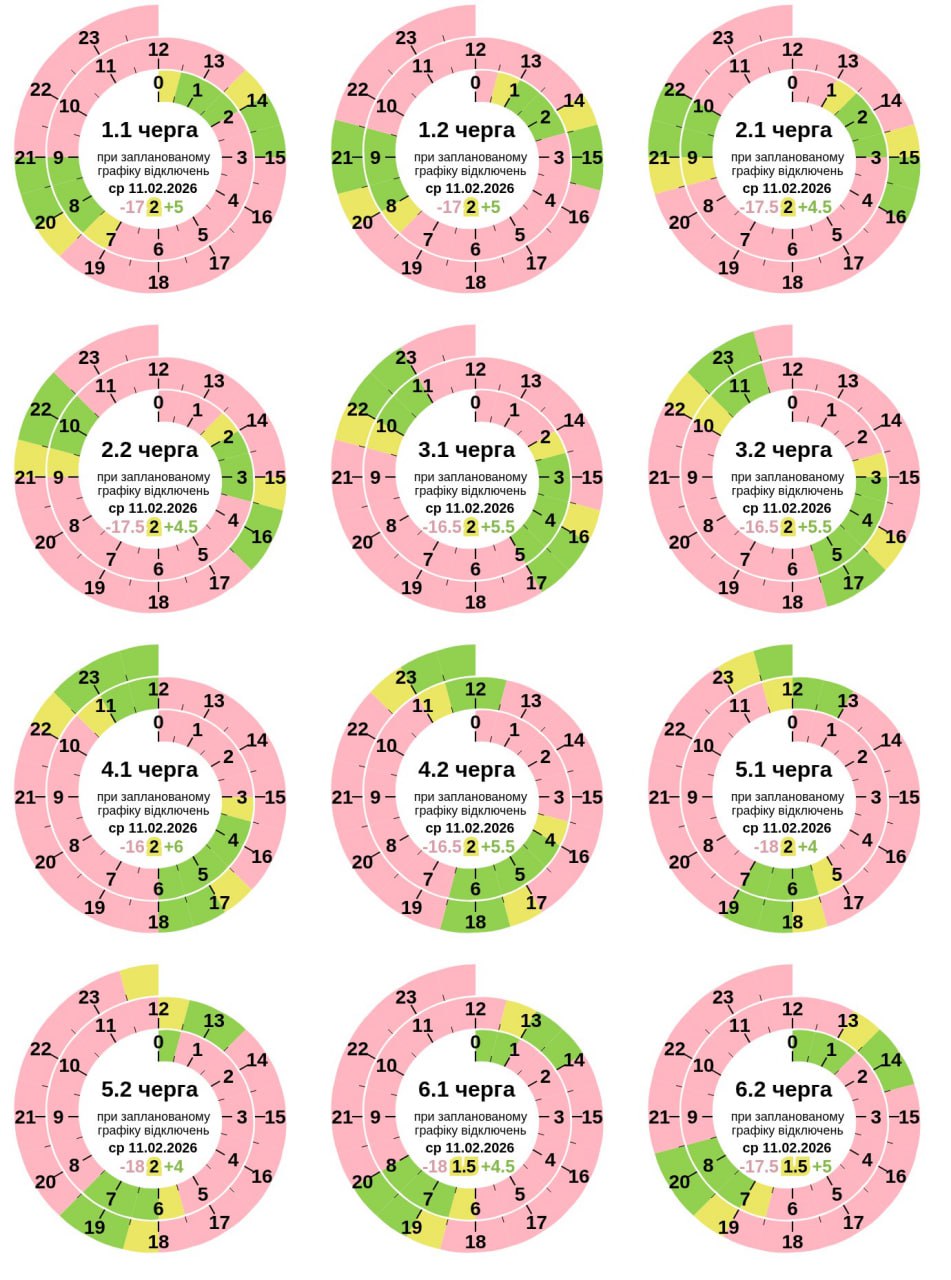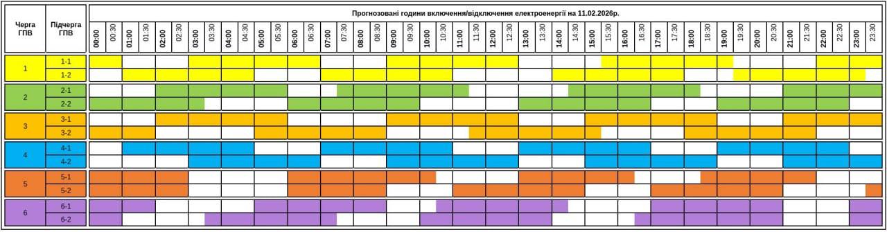 До чотирьох черг одночасно. Графіки відключень на 11 лютого