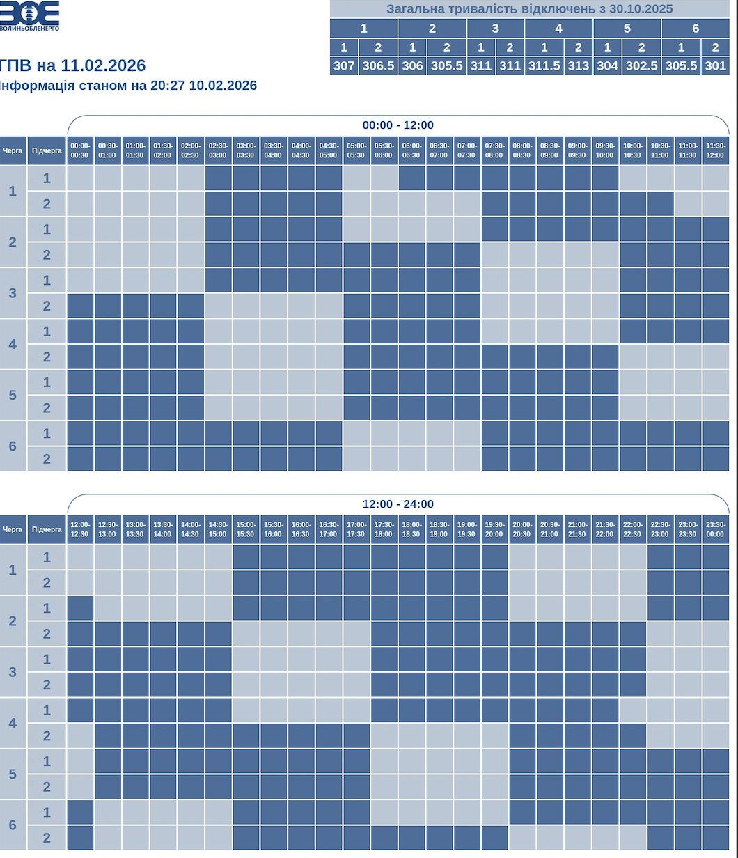 Графіки відключень у Волинській області 11 лютого
