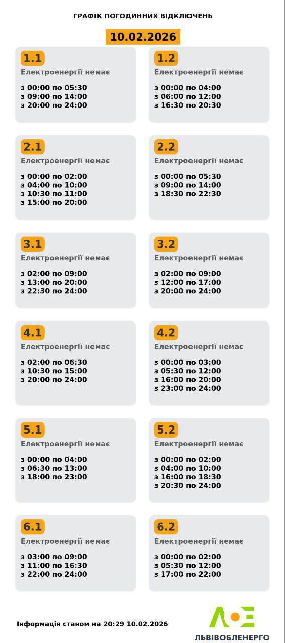 Графіки відключень у Львівській області 11 лютого