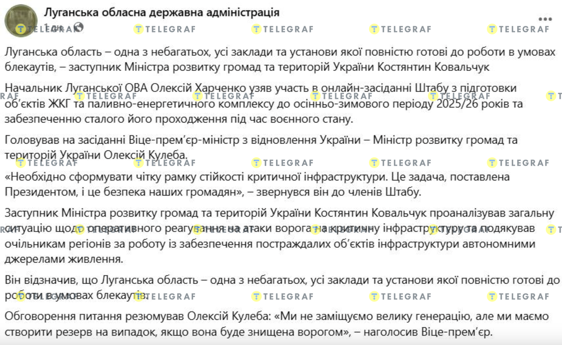 "Луганська область — одна з небагатьох, усі заклади та установи якої повністю готові до роботи в умовах блекаутів", — заявив заступник Міністра розвитку громад та територій України Костянтин Ковальчук.