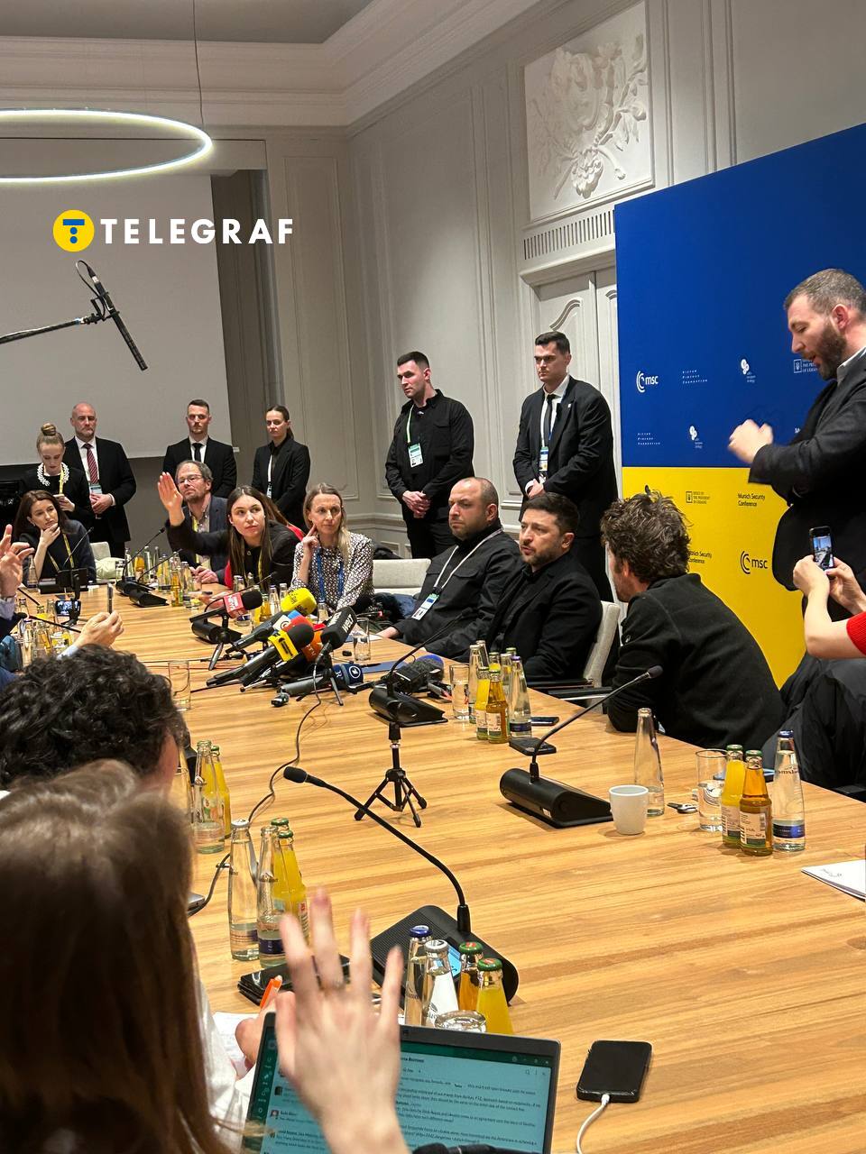 Спілкування Володимира Зеленського з журналістами в Мюнхені 14 лютого 2026 року. Фото "Телеграф"