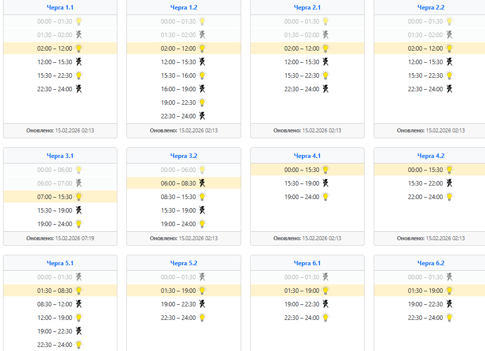 Відключення світла 15 лютого. Де будуть найжорсткіші графіки