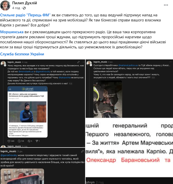 Клінічний психолог, тренер груп підтримки для ветеранів і військовослужбовців, ветеран ЗСУ Філіп Духлій у своїх соціальних мережах звернув увагу на пости Логвіна і звернувся до радіо "Перець FM" з питанням, як вони ставляться до ситуації та висловлювань свого співробітника.