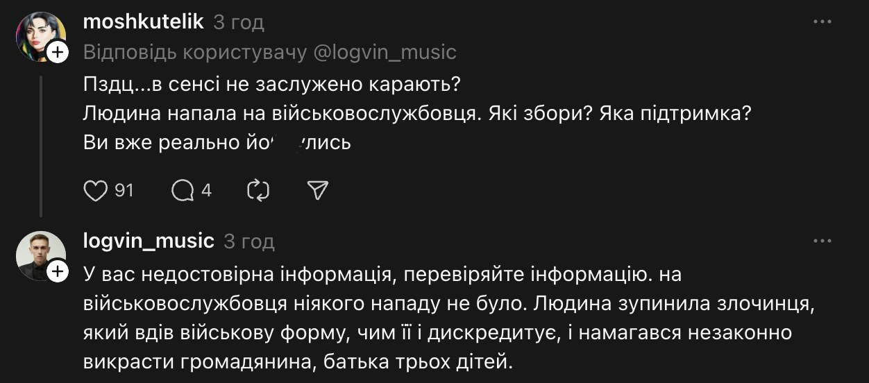 На своїй сторінці в Threads Логвін опублікував низку постів, в яких пише, що футболіст "заслуговує на підтримку від кожного з нас", і ставить під сумнів справедливість покарання. В одному з постів ведучий пише: