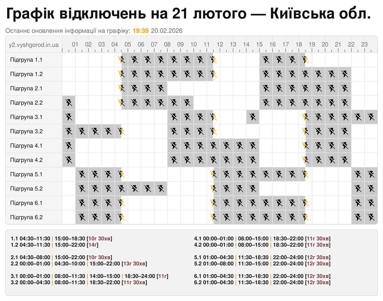 Одним – п’ять відключень, іншим – весь день світла. Які графіки діють 21 лютого
