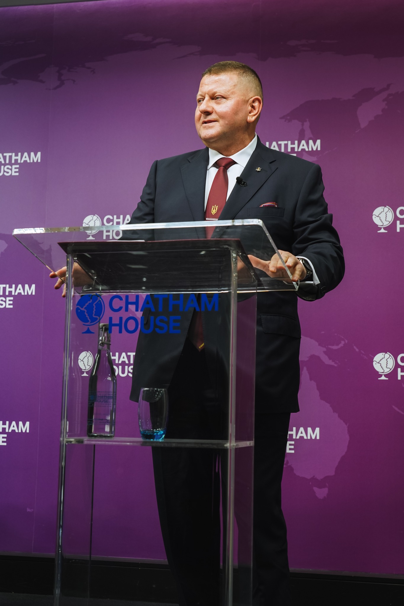 "Сучасна війна вже інтегрує безпілотні та роботизовані системи, розподілені сенсорні мережі, та весь електромагнітний спектр, тобто віртуальний, інформаційний, електромагнітний, частково фізичний в єдиний район бойових дій. Сьогоднішня війна між нами і російськими окупантами є такою, як є. І ми точно знаємо, що саме зараз достатньої військової сили, щоб якось завадити цій війні, у жодної країни немає", — наголосив генерал.