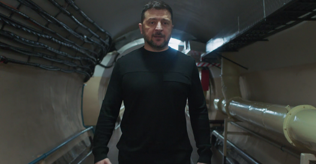 Президент у своєму зверненні згадав найбільш болючі моменти від початку війни Росії проти України. В ході звернення він йшов коридорами бункеру й врешті піднявся наверх.