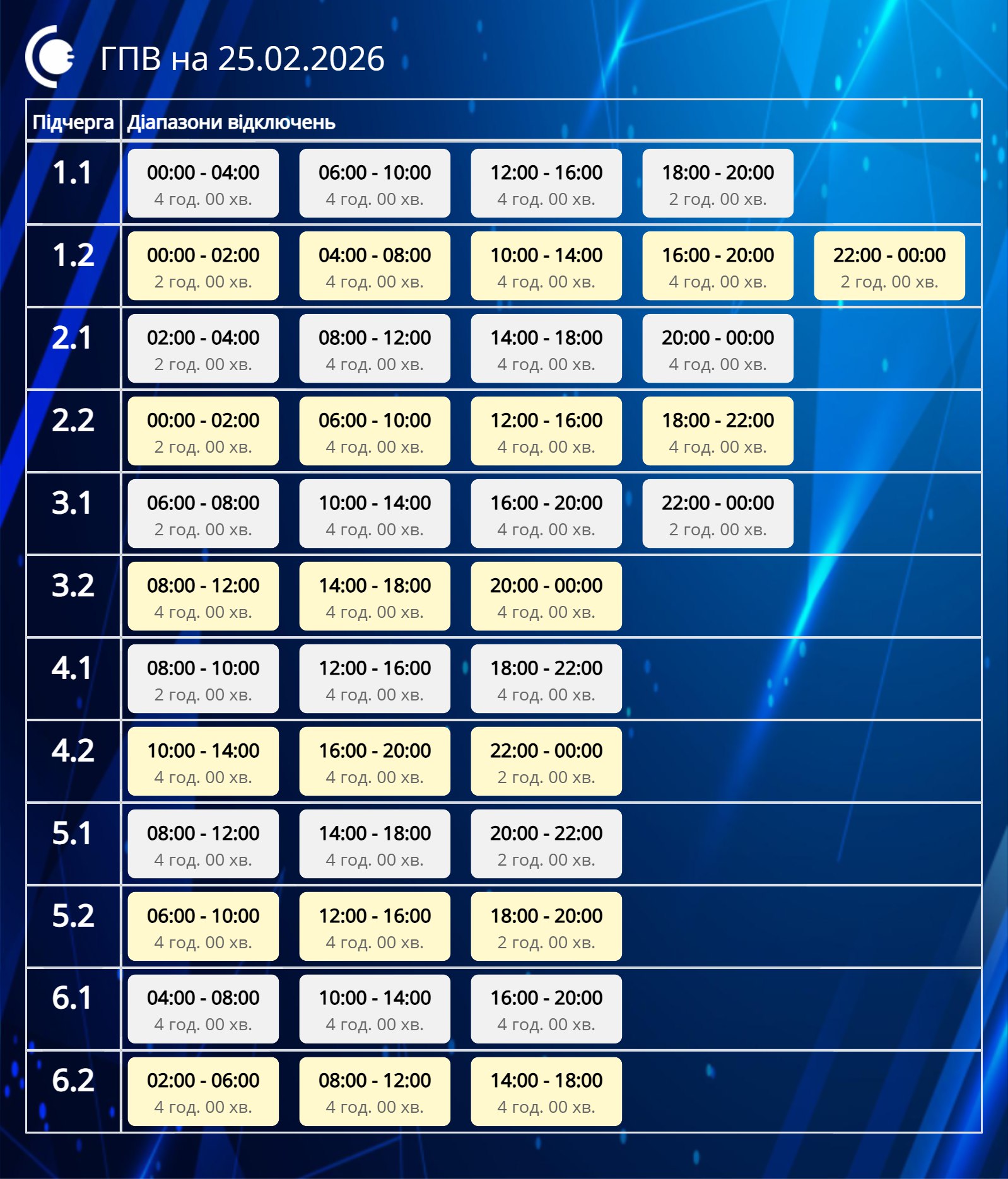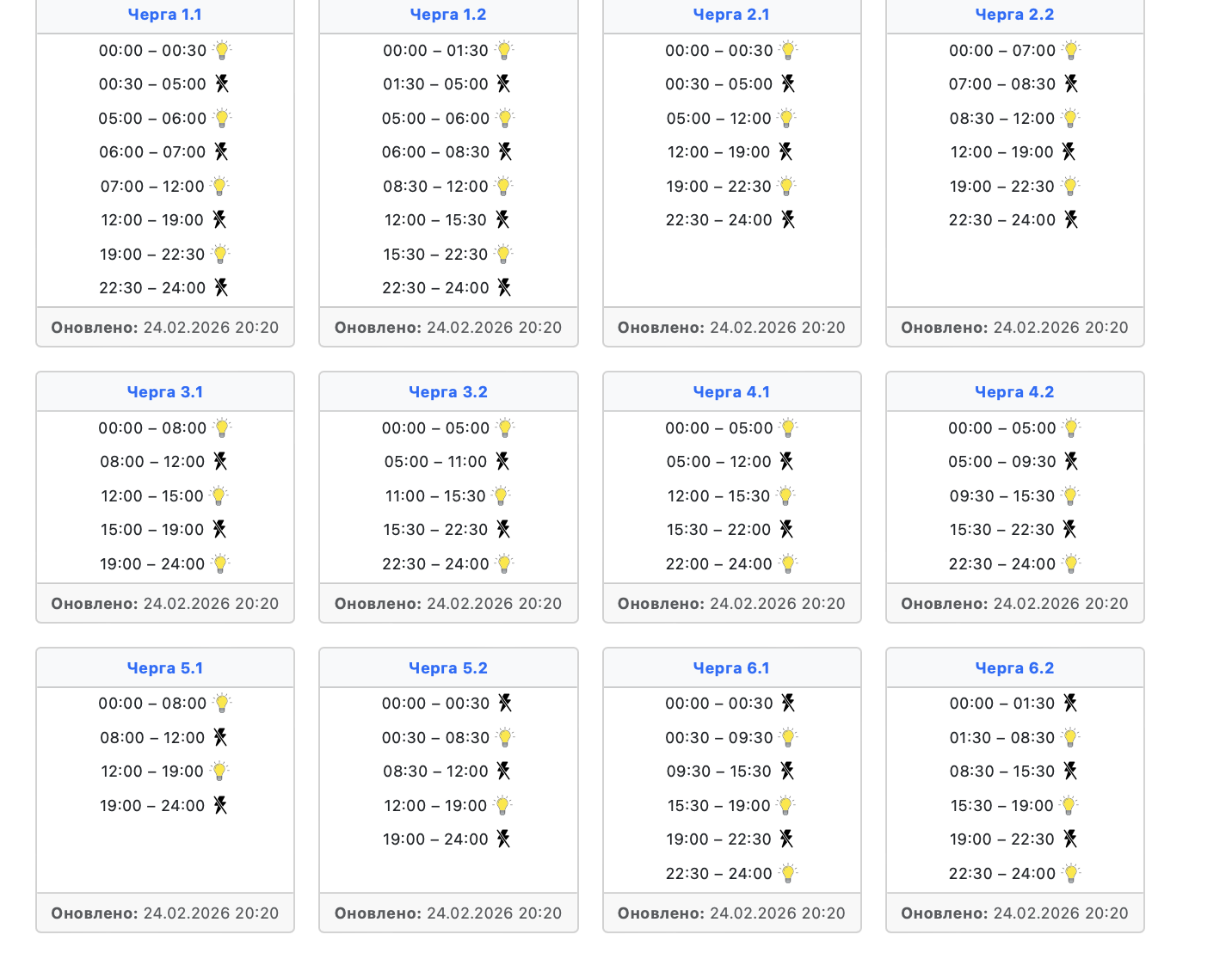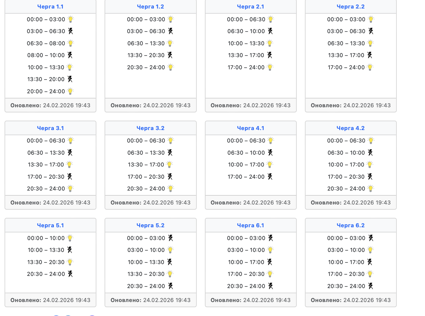 Годин зі світлом стає більше. Графіки відключень на 25 лютого