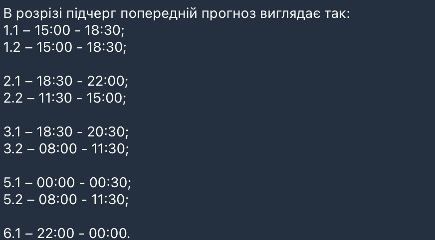 - Графіки будуть нерівномірними у різних районах через особливості пошкоджень енергосистеми.