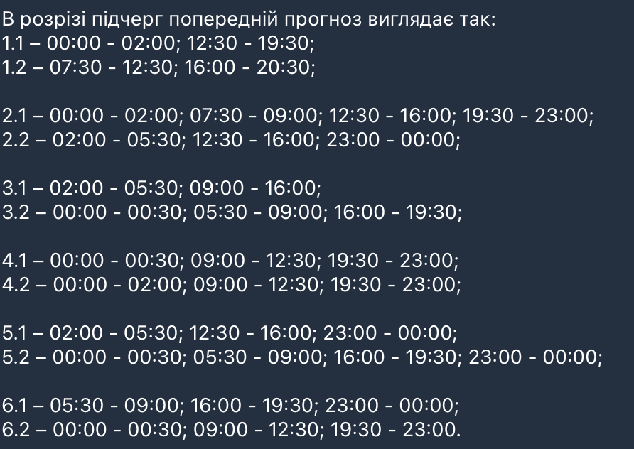 - Графіки будуть нерівномірними у різних районах через особливості пошкоджень енергосистеми.