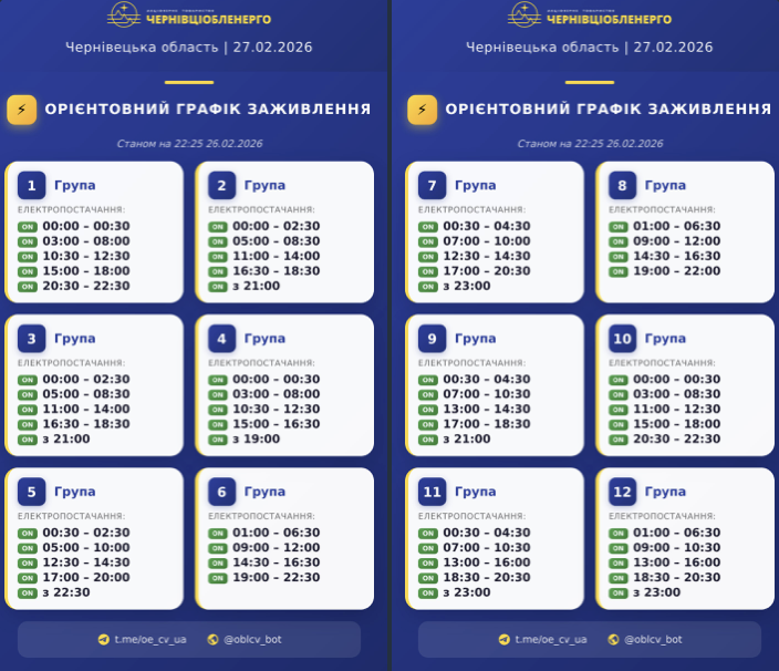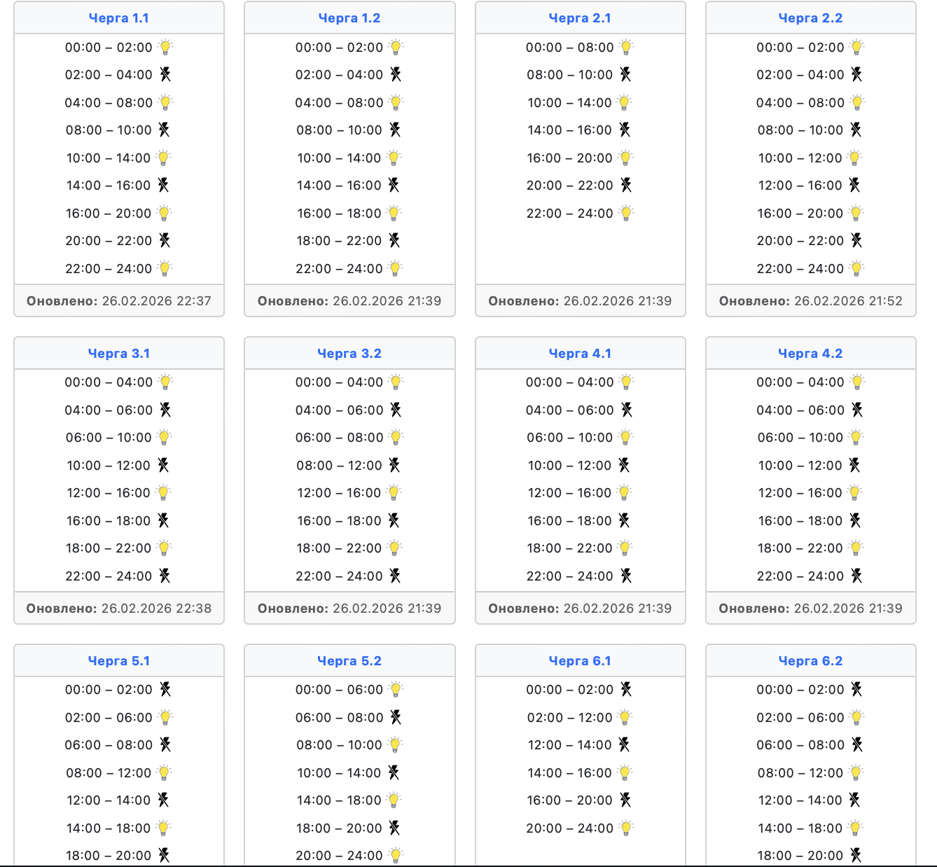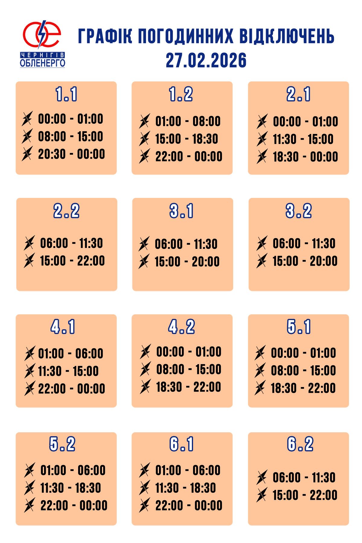 Понад 12 годин без світла. Графік відключень на 27 лютого