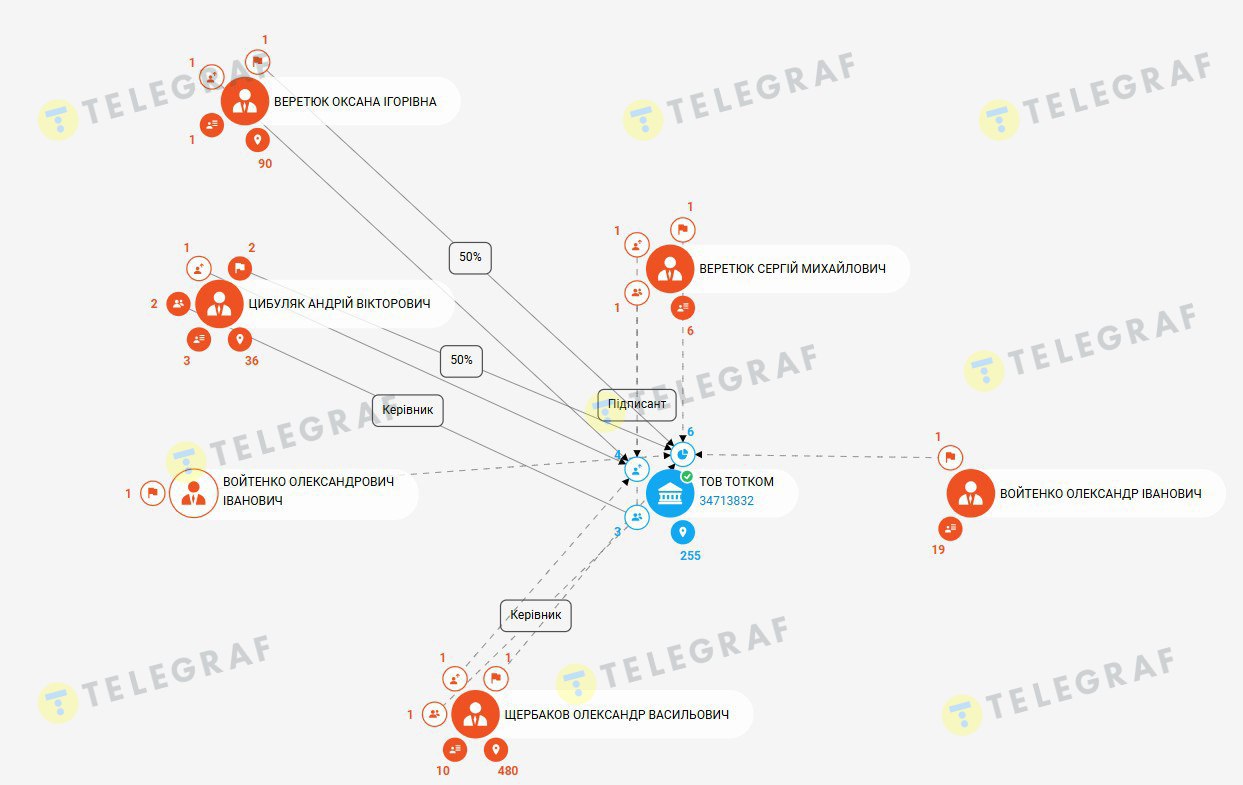Розпоряджатися значною сумою за рішення держпідприємства буде ТОВ "Тотком" зі статутним капіталом лише у 40 тис. грн. Компанією володіють в рівних долях Оксана Веретюк та Андрій Цибуляк.
