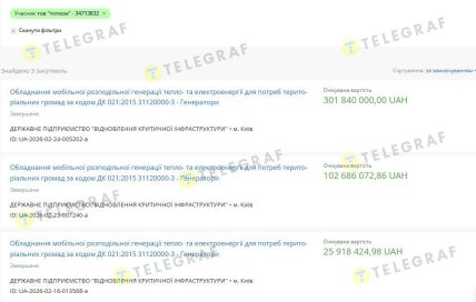 Як повідомляв "Телеграф", київські комунальними закуповують генератори з переплатами.