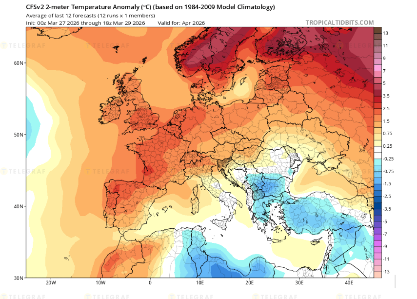 За прогнозом синоптика Ігоря Кібальчича, у першій декаді квітня температура буде вищою за норму на 1–4 °C у більшості регіонів. Не пощастить з теплом тільки західним областям — буде прохолодніше. Водночас через вплив атмосферних фронтів можливі часті дощі, тумани та перші весняні грози.