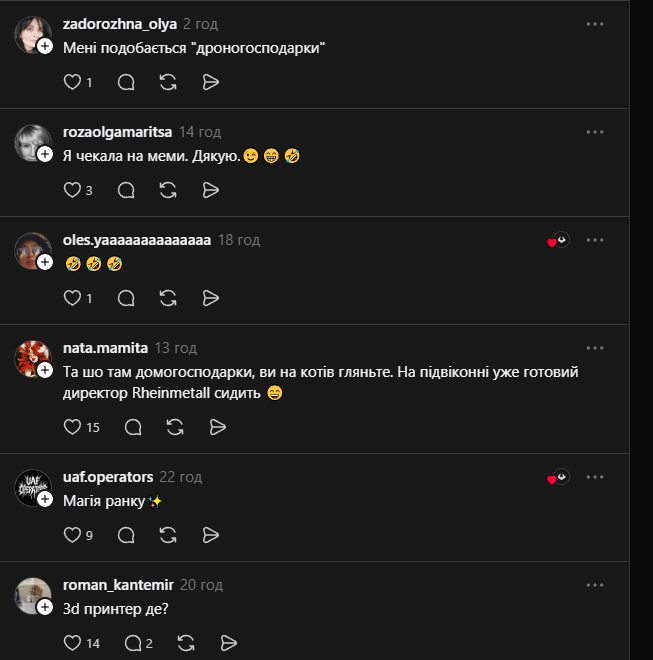 При цьому за жартами стоїть важлива реальність: дрони, які виробляються в Україні, сьогодні активно використовуються на фронті та відіграють ключову роль у бойових діях. Вони дозволяють ефективно виявляти позиції противника, коригувати вогонь та завдавати точкових ударів.