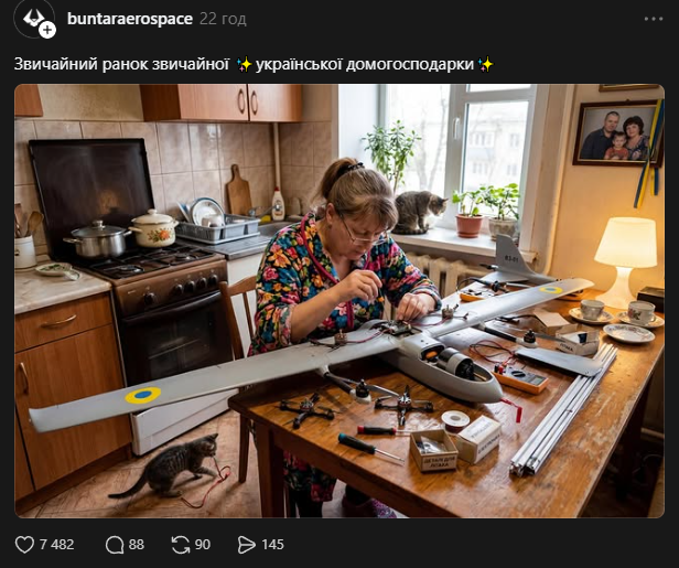 Це просто гра з Lego… вони не мають технологічного прориву… Це українські домогосподарки. Вони мають на кухні 3D-принтери, і вони роблять деталі для дронів.