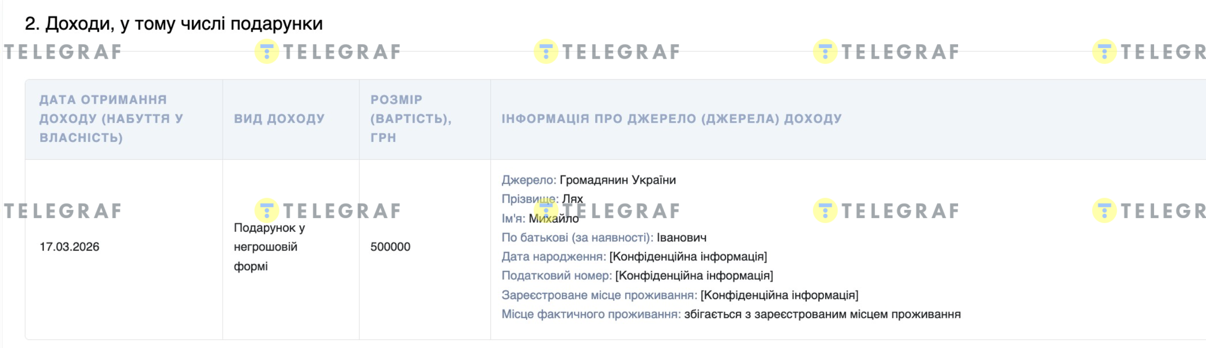 Окрім того, в очі впадає й те, що сам мер міста у березні отримав подарунок від батька на суму 500 тисяч грн. Однак в декларації зазначено, що йдеться про негрошову форму.