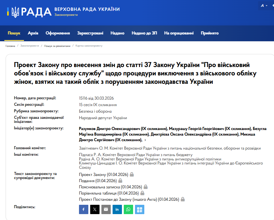 У деяких регіонах України фіксують кричущі випадки — жінки опиняються у так званому "реєстрі ухилянтів" без законних підстав, адже вони ніколи неслужили, не перебували на військовому обліку, були медиками, але них вже накладаються штрафи. У зв’язку з цим у Верховній Раді зареєстровано законопроект №15116, спрямований на усунення та запобігання подібним інцидентам.