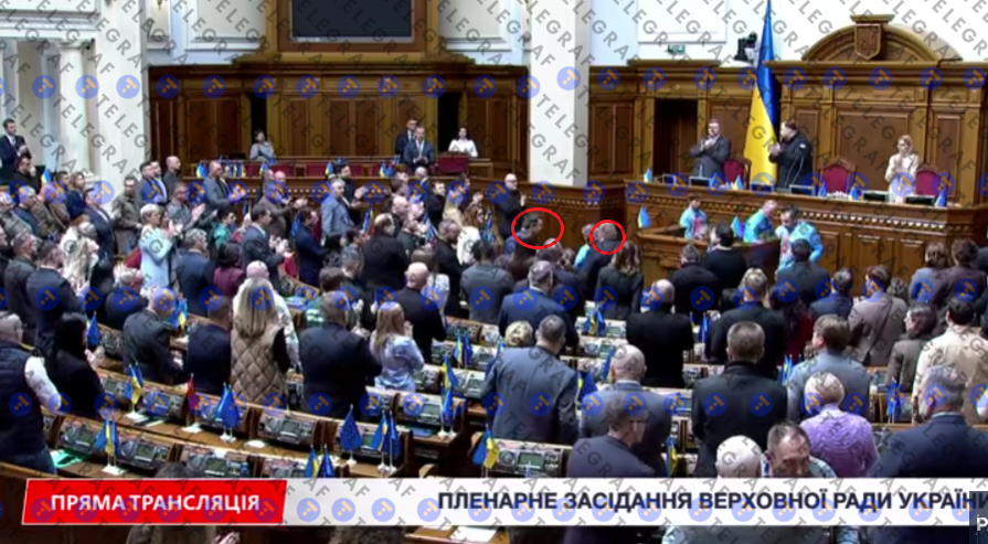 "Телеграф" зазначає", що на прямій трансляції з ВР видно, як після виступу спортсменів, Тищенко та Клочко стоять у проході, де ті мають йти. Судячи з кадрів, з ними вони обмінялися потисками рук.