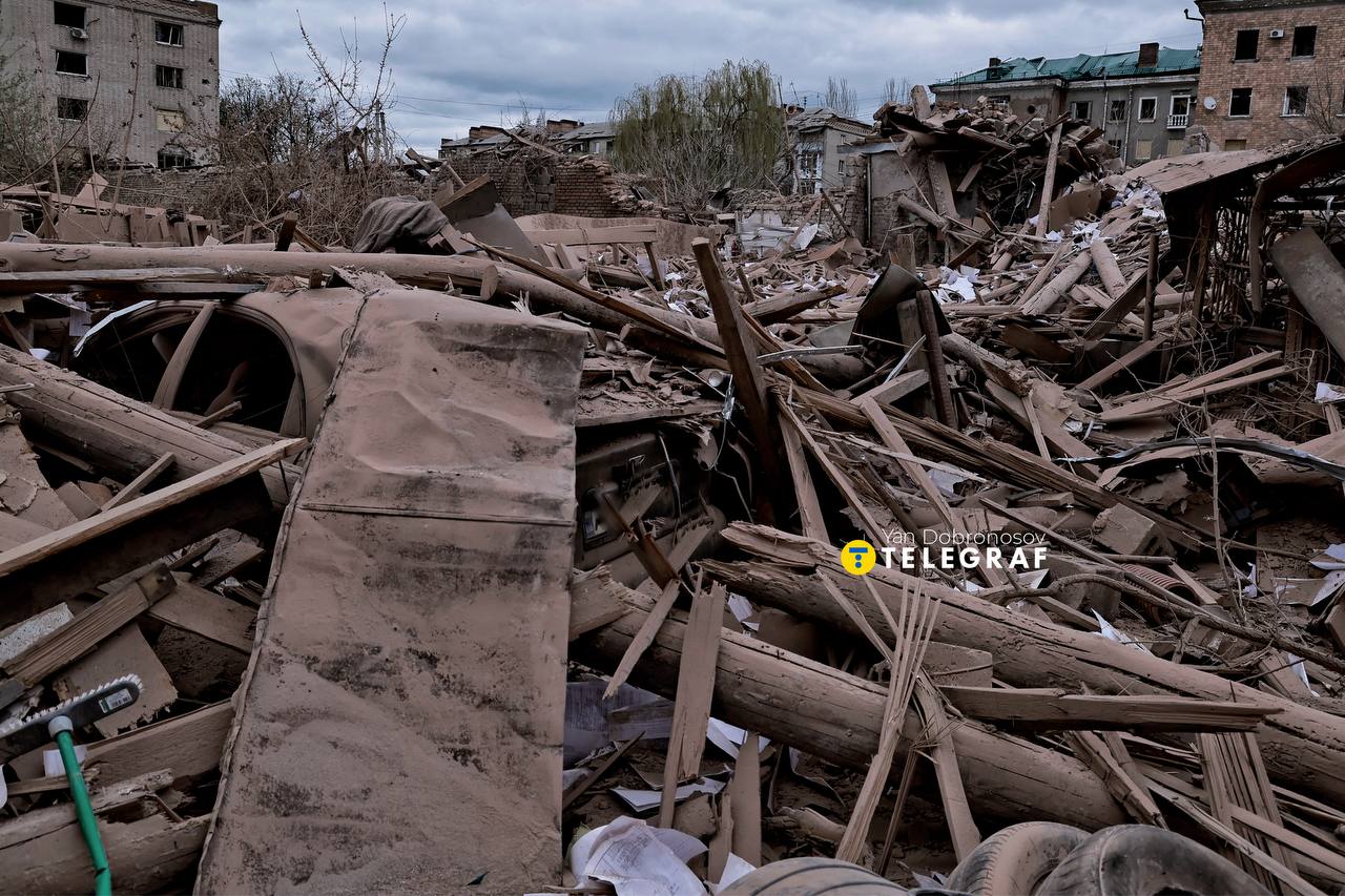Ян Доброносов на фото показує, що після здійснення нової атаки ворогом центр міста став схожим на руїни. До цього і центр та інші райони міста вже неодноразово зазнавали обстрілів.