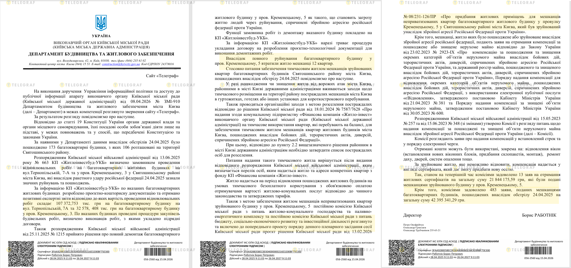 Відповідь Телеграфу від профільного департаменту КМДА