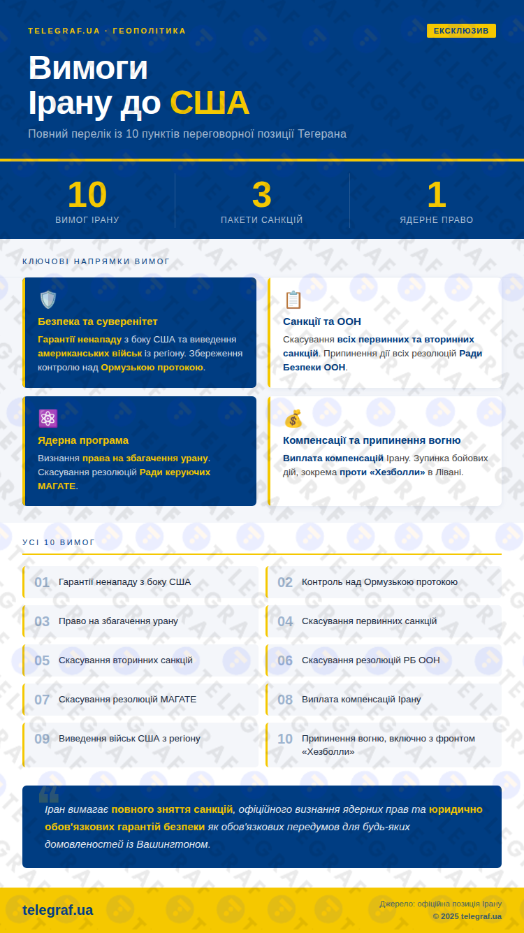 При цьому перемир’я розглядається як вимушений крок для двох сторін. Для Тегерана продовження конфлікту пов’язане із руйнуванням інфраструктури, посиленням санкційного тиску та загрозою економічної кризи.