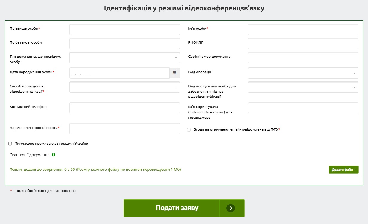 Форма для прохождения видеоидентификации на сайте ПФУ. Фото Скриншот