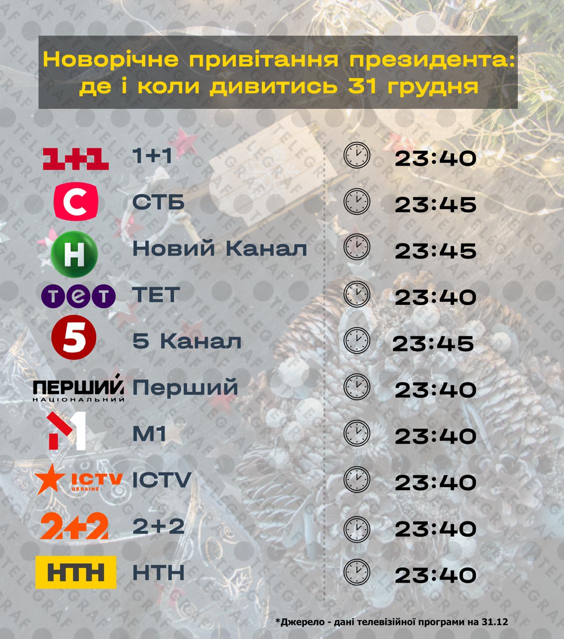 Где и когда смотреть новогоднее поздравление Зеленского. Инфографика "Телеграфа"