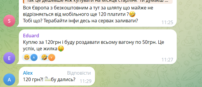 В комментариях украинцы подвергли критике то, что интернет в поездах будет платным. Хотя это нормальной практикой, например за доступ к сети в самолетах также нужно платить. Некоторые пишут, что в Европе в транспорте Wi-Fi бесплатный. Другие сомневаются, что скорость будет на достаточном уровне.